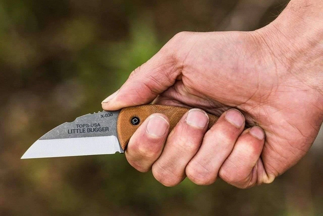 The TOPS Little Bugger offers outstanding TOPS fixed blade performance in a scaled down design. Measuring just under 6ย inches, the Little Bugger won’t weigh you down, but still offers enough cutting power for most cutting tasks. It features a curved profile with a scandi ground sheepsfoot blade and a contoured tan canvas micarta handle. Pick up a compact EDC companion with the Little Bugger from TOPS Knives.