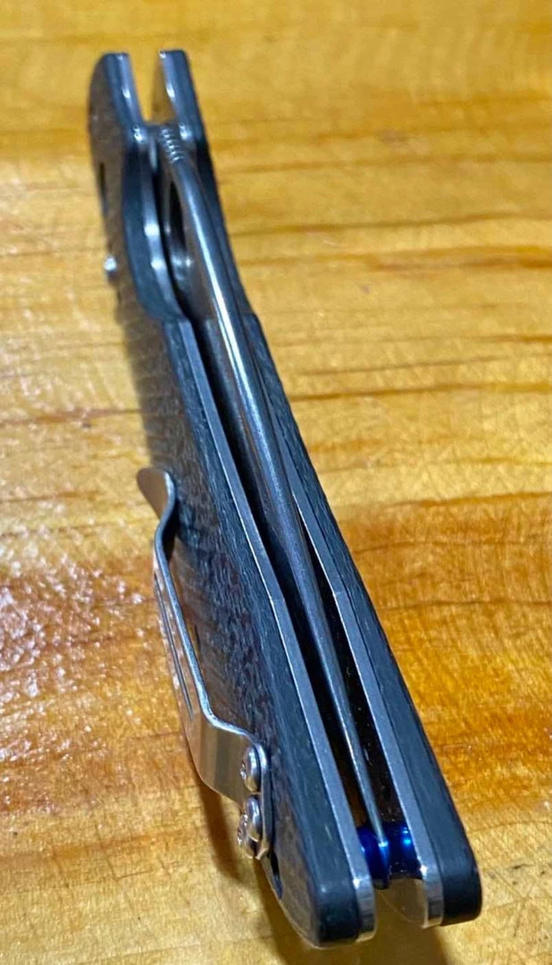 For those not familiar, this is a Benchmade Gold Class knife that was an exclusive release to international dealers. It features the classic AFCK design with carbon fiber scales and a “Birdseye” damascus blade. Also has blue barrel backspacers and the original round hole opener, not the oval. This one is #46 of only 100 ever made and is has original paperwork and box.