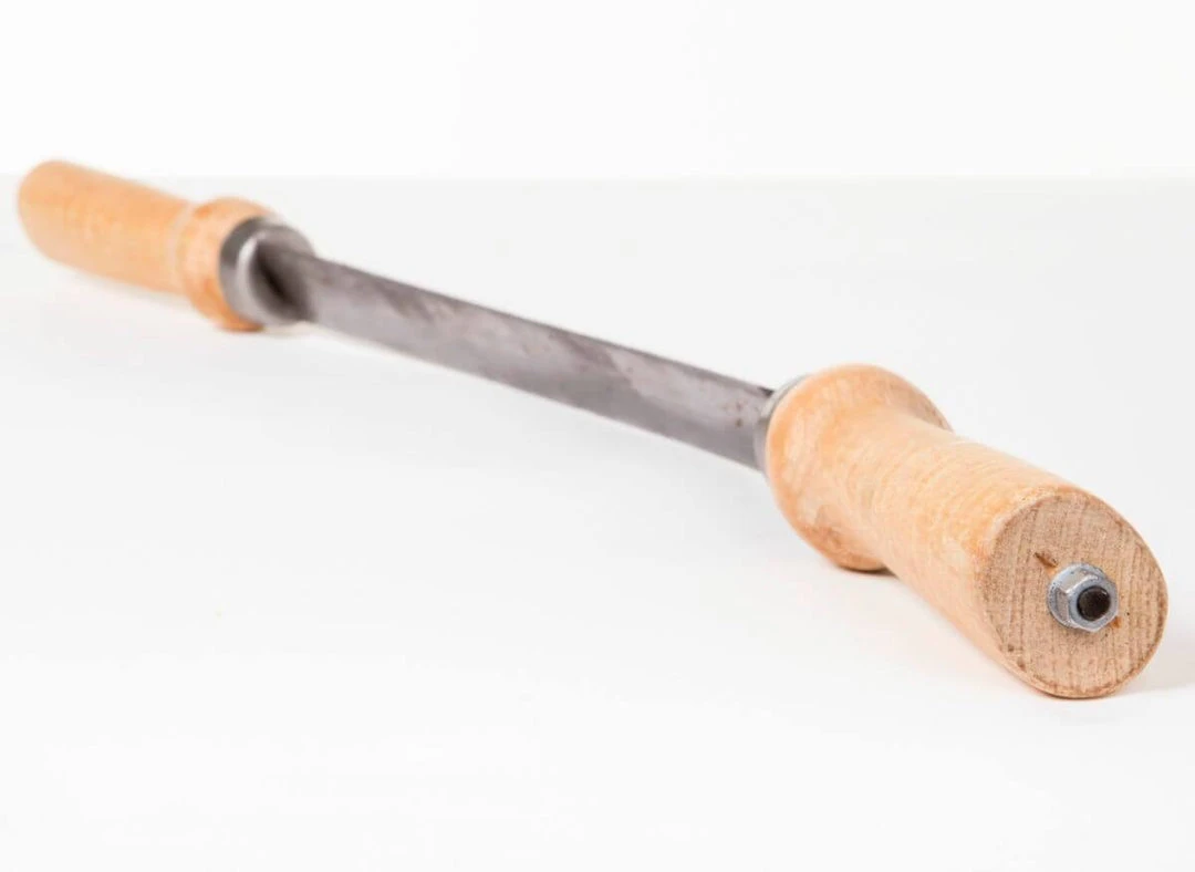 The GrΓ€nsfors Swedish Draw Knife is forged into an arch and is meant to be used with both hands for optimum effectiveness. The Draw Knife is mainly for debarking and shaping logs, and perhaps also dowels. The protruding handles allow the user to get plenty of power behind each stroke. It is important to put your whole body into the action, rather than just using your arms. The knife glides over the timber, with the angle adjusted by hand for the desired planing effect. The Draw Knife can also be angled more sharply for more of a cutting action.ModelΒ 485