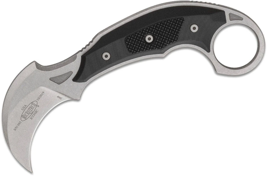 The Iconic might be the perfect karambit. Designed in collaboration between Bastinelli and Microtech Knives, it is a compact fixed blade that packs an incredible punch. It is extremely comfortable to hold and to use in the forward grip, but it is a karambit and therefore meant for a reverse grip use. This is immediately evident when you strap this knife onto your belt with a specifically designed sheath for right or left-handed carry. The contoured G10 scales enhance both the look and feel of this knife and its full tang design means it’s prepared to serve you well for years to come. Made in the USA by Microtech Knives.