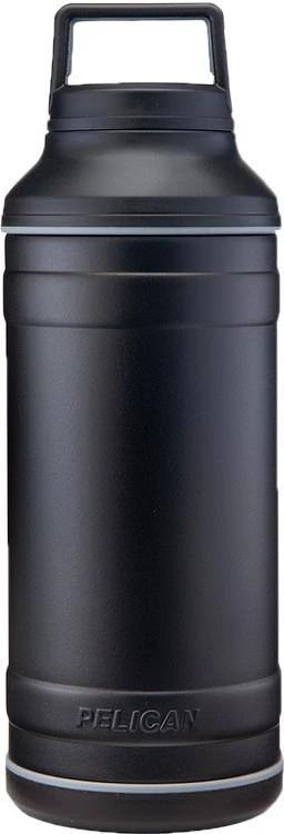 Pelicanโs latest line of drinkware is a go anywhere, do anything, must have addition to your way of life. Ruggedly engineered with 18/8 pro grade stainless steel, featuring a sweat-proof, powder coated finish that ensures your hands wonโt slip from condensation, plus a non-Slip rubber base for increased durability. Weโve also made sure that our new Pelicanโข Bottles are effortless to transport, as each spill-proof lid is also an easy-carry handle. Just loop this through your fingers or attach it to your favorite backpack โ the contents will be stowed safely inside until youโre ready for your next sip or pour. Able to hold hot or cold beverages, Pelican Bottles come in your choice of black or white, with size capacities of 18 oz., 32 oz., and 64 oz. Guaranteed for Life.