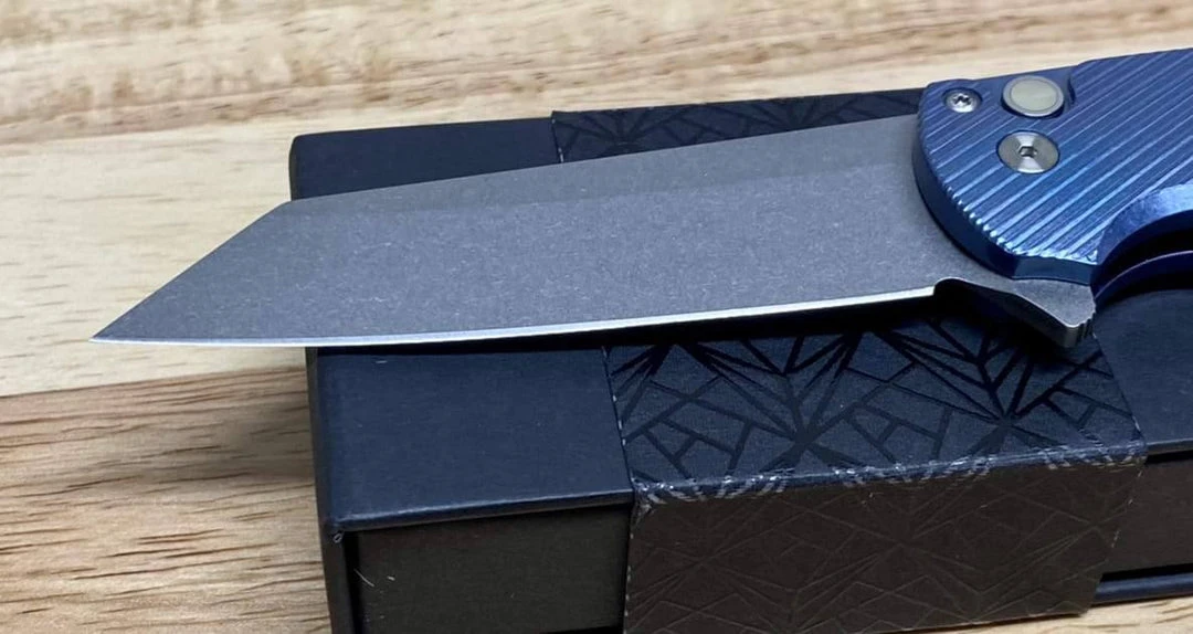 Pro-Tech Malibu 5241 Blue Titanium Custom Reverse Tanto Flipper