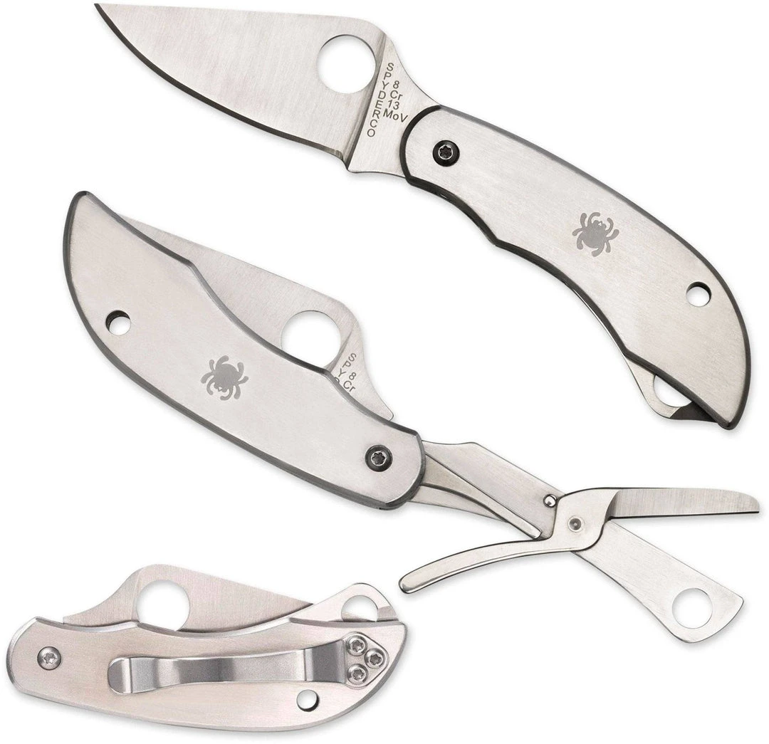 Spyderco ClipiTool Scissors Folding 2″ 8Cr13MoV Blade, Stainless Steel Handles – C169P