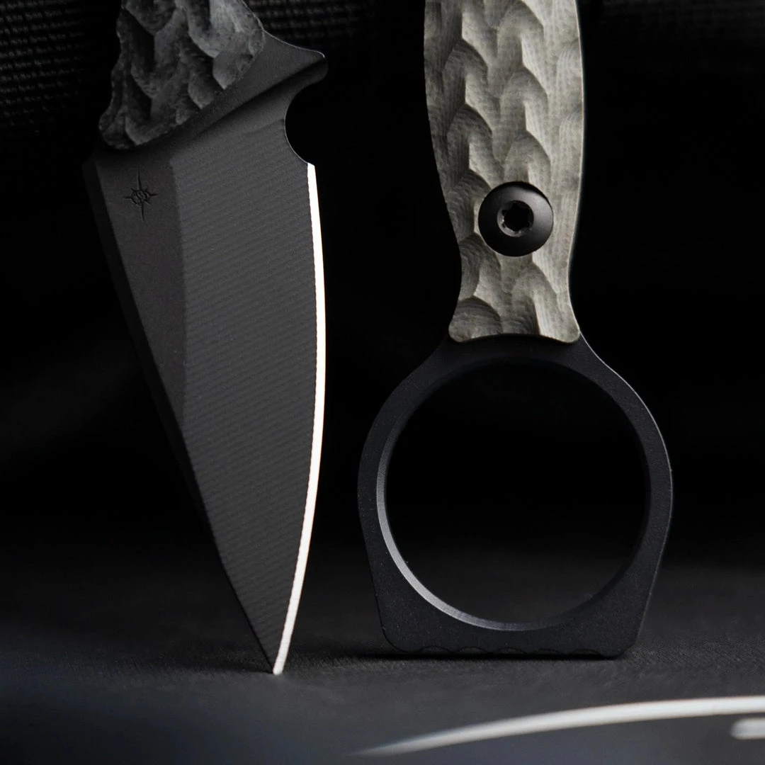 The butt of the blade has our signature thumb jimping to reduce the chances of slippage when in a reverse hold, and the steep thumb ramp on the spine keeps the hand in place while in a standard hold. This minimal blade is the perfect self defense or concealable tool for your everyday carry.