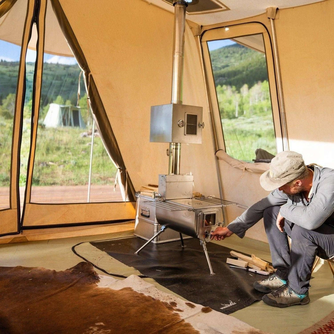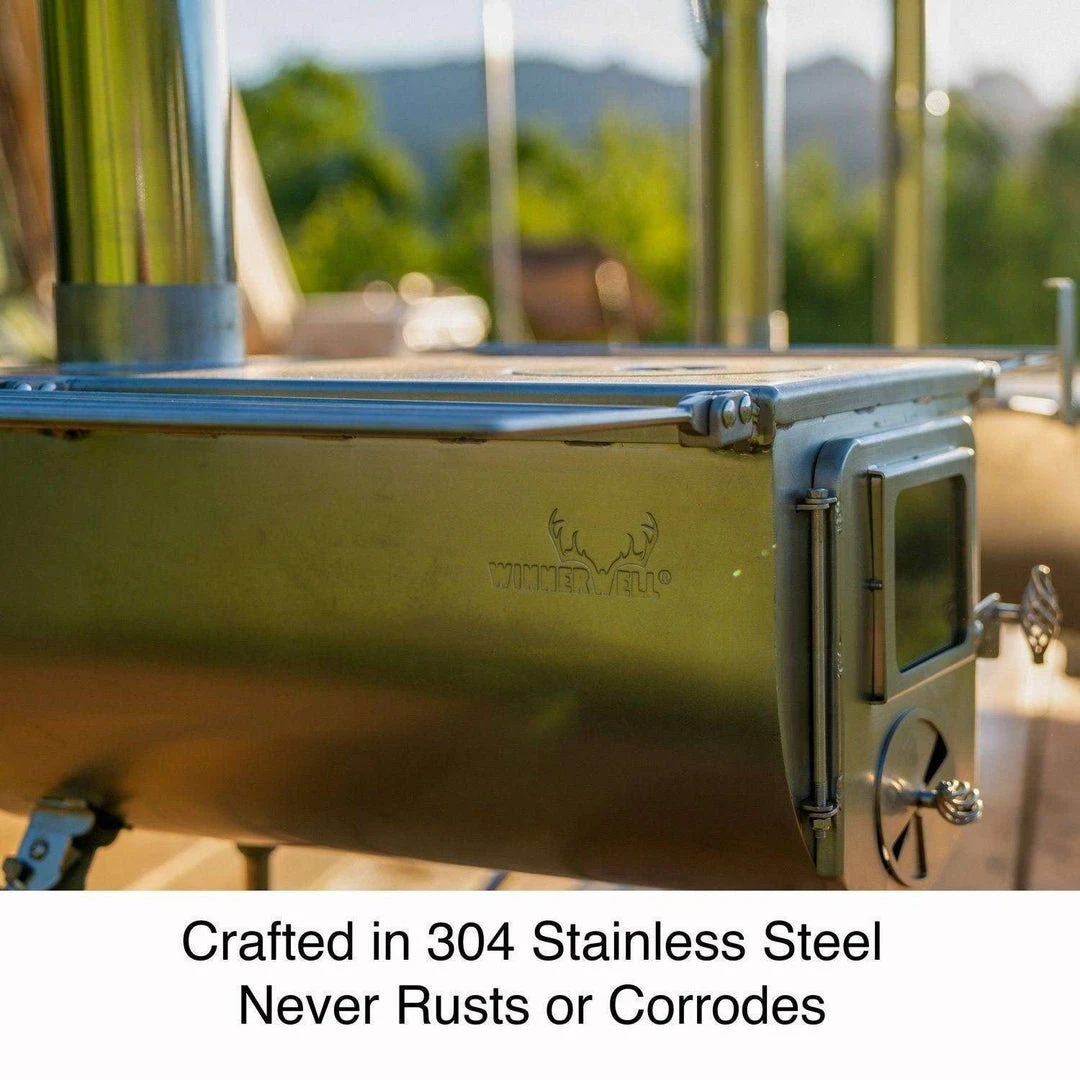 Perfect for Bushcrafters and Outdoorsman, the Winnerwell Woodlander Large Wood Burning Tent Stove is ideal for heating and cooking in compatible canvas tents, as well as recreational shelters like wall tents, teepees, shacks, tiny homes, and more. The Woodlander is also great for general outdoor use—especially in camping areas where a fire pan is required. Highly portable and crafted entirely from 304 stainless steel, the Woodlander is a reliable heating and cooking tool in the toughest environments.